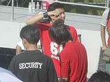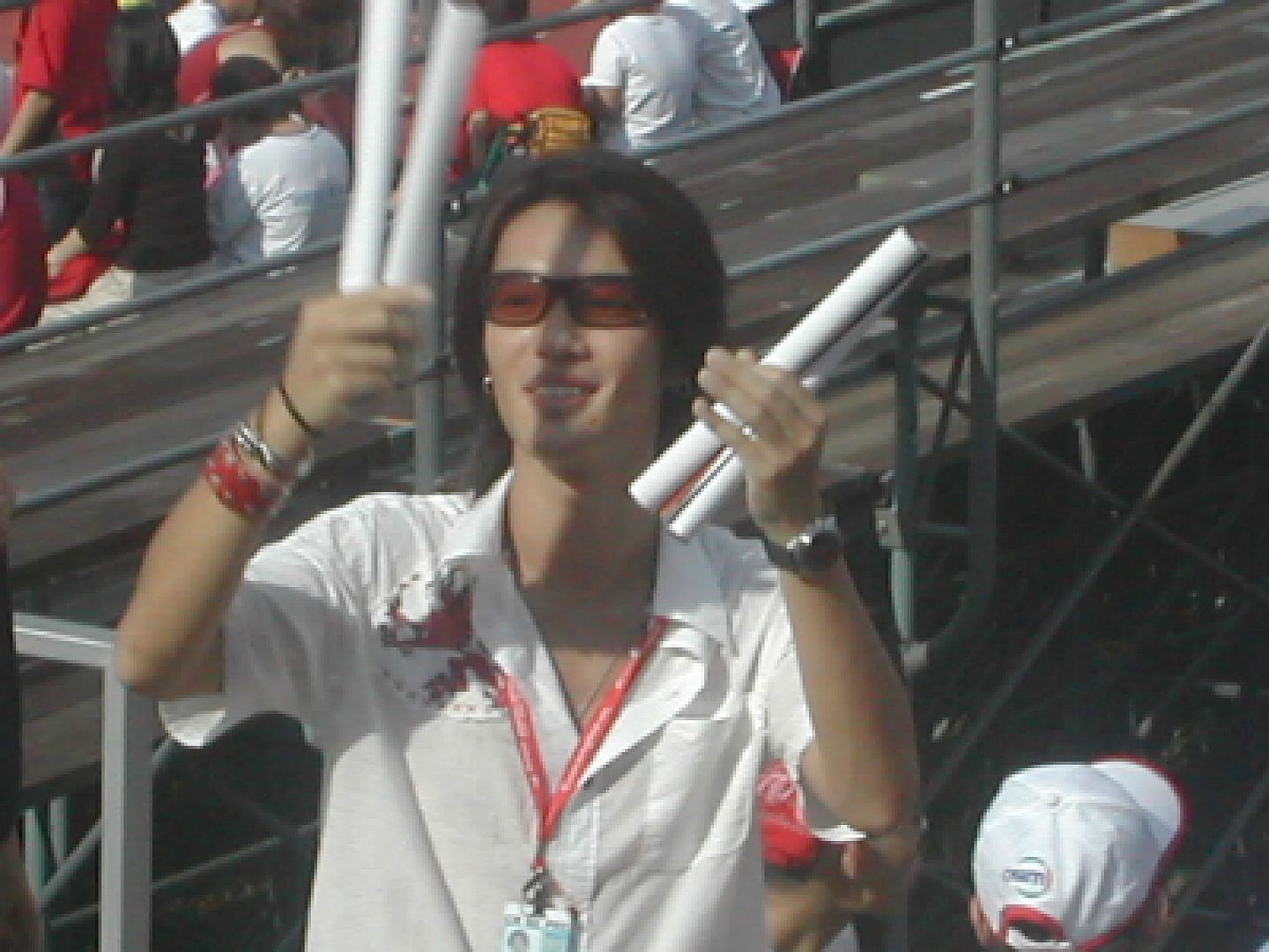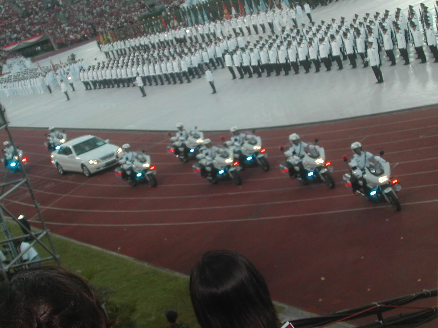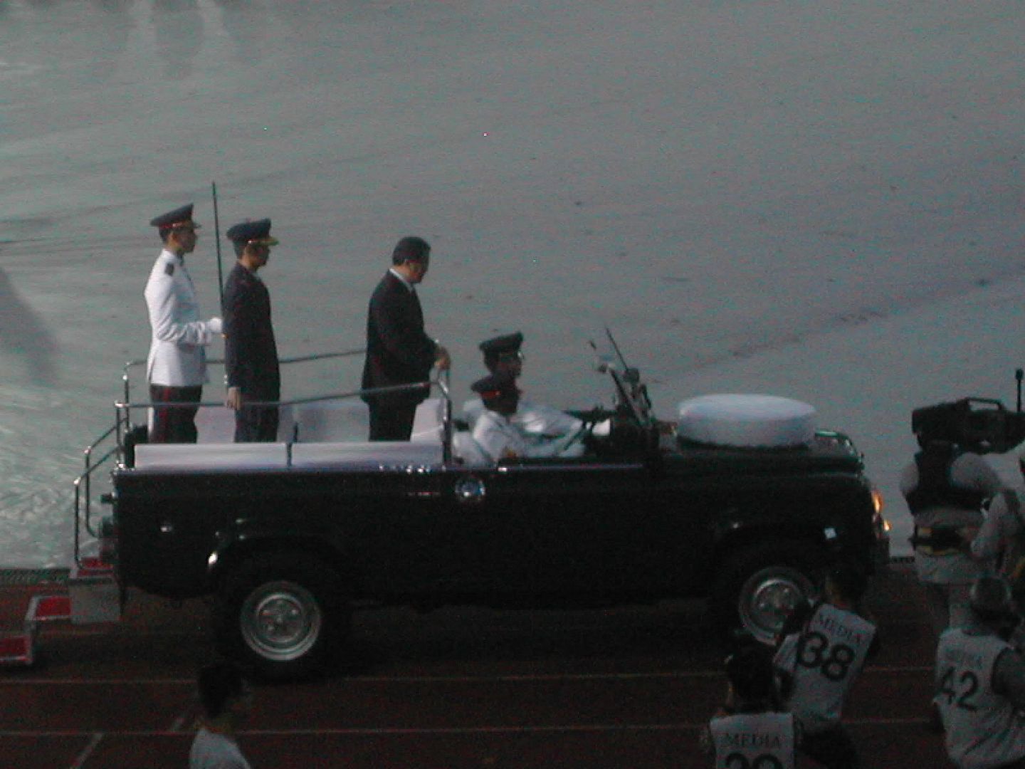 oh here's the speaker of dunno wat boarding the wateva car to take his tour round the stadium.. nice leh.. muz feel like president up there.. muahaha...